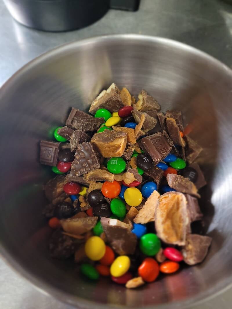 I know we are halfway into November and most of us are thinking about Thanksgiving and Christmas but still have leftover Halloween candy! I did not have a lot of tricks or treating in my neighborhood. So I had a lot of leftover candy. So why not make candy cookies? I had some browned butter left over from the oatmeal cookie made. I decided to make a brown butter candy cookie. It was really fun to make. I took all the leftover candies I had chopped them up. I made a basic chocolate cookie dough I added brown butter instead of regular butter and all the leftover candy I had. I chilled the dough and then baked it at 350 degrees for about 12 minutes, rotating halfway through baking. Sofia loved them!! She brought them to school, and she said they were gone in a few minutes. The batch that I made was about 2 and a half dozen. I gave some to my employees and they love them. This recipe will go in my recipe book, and I will use it again at easter with easter candy. That will be good.